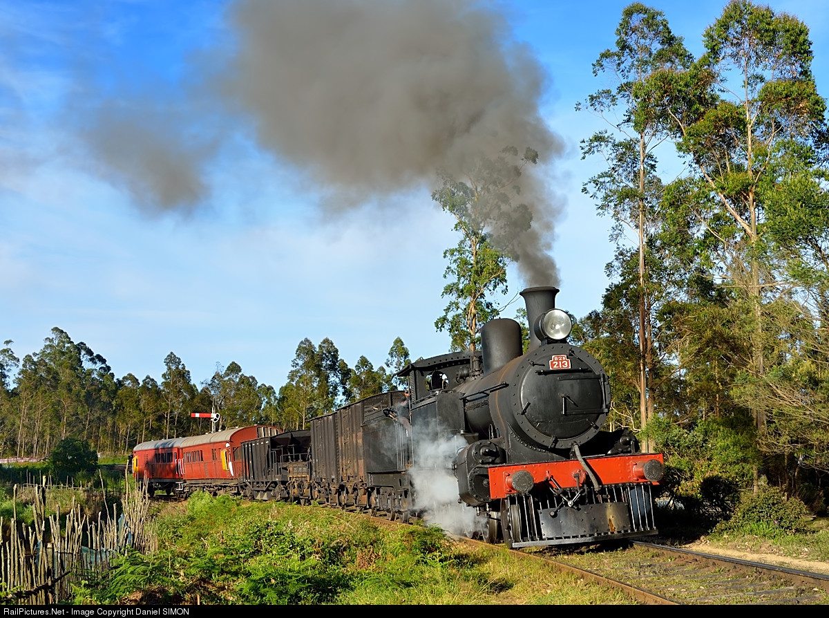 | 4-6-0 #213 is leaving the Pattipola station with a mixed train. Pattipola is the highest located railway station in Sri Lanka at an altitude of 1891 meters (6204 feet) above sea level. |