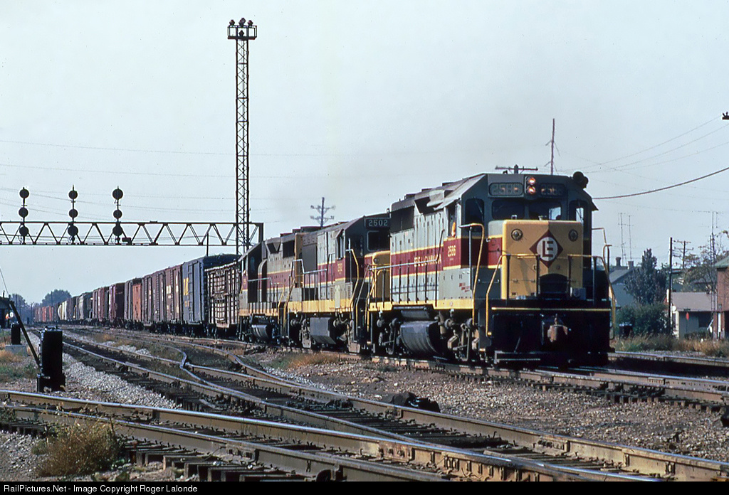 Coming east through Marion, Ohio with in the lead EL GP35 2586 with U25B 2505 and GP35 2570 with a mixed consist of auto parts cars. Unknown photographer photo, from my slide collection.
