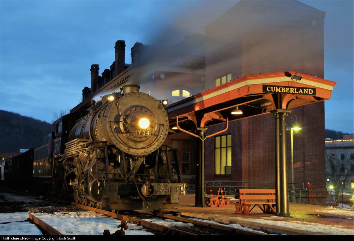 RailPictures.Net Photo: 734 Western Maryland Railway Steam 2-8-0 at Cumberland, Maryland by Josh Scott