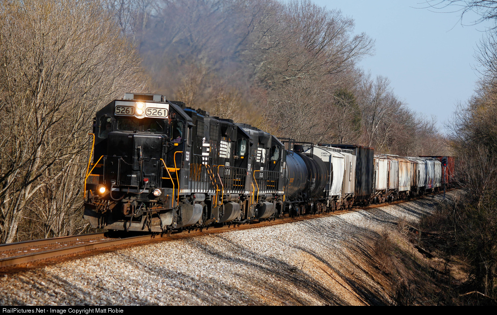 A Norfolk, Portsmouth, & Belt Line lettered geep leads Linwood-Oyama road local P61 through the signals at West Barber on a beautiful Spring-like day in the Piedmont.