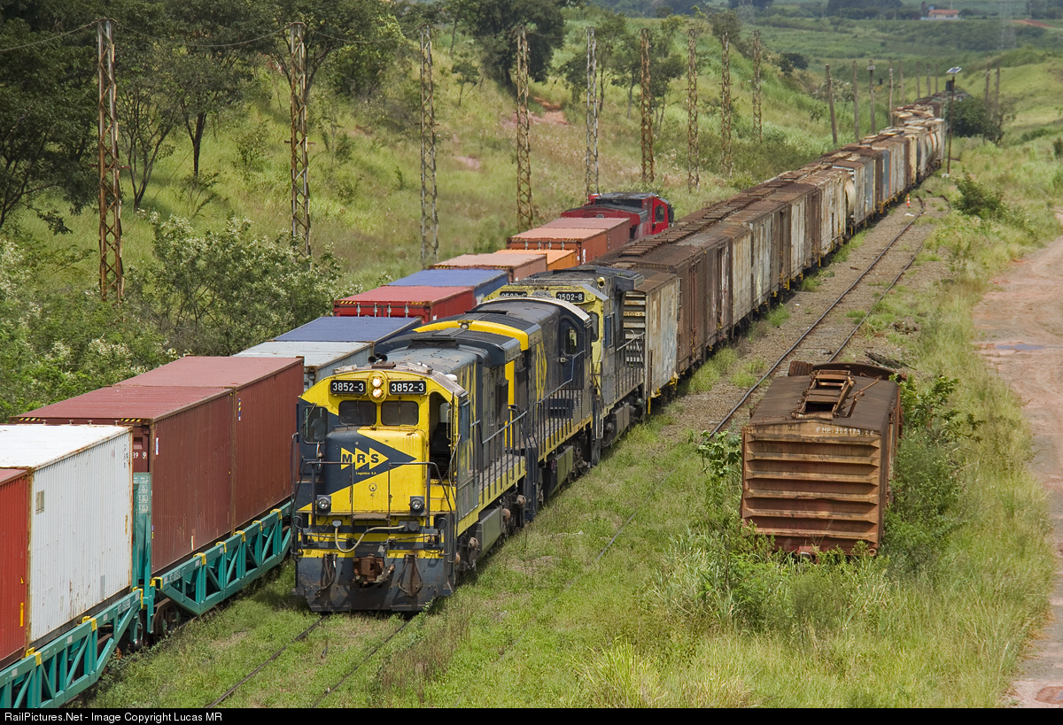 | First time photographing in Rio Claro city, we decide to capture the south side of the yard. Intermodal C62 standing by at track 1, while northbound empty MRS M75 led by C36ME #3852 arrives at the yard track 2, preparing to stop for crew change. |