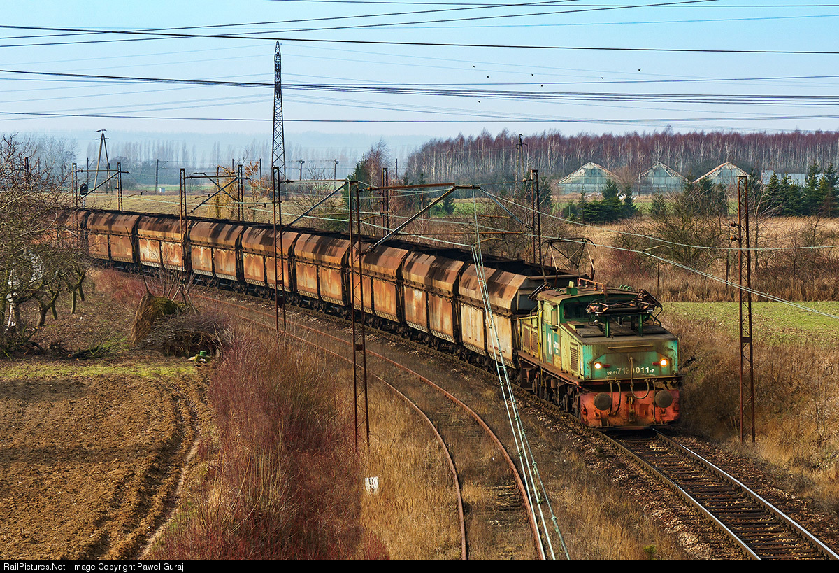 | EL2 produced by LEW Hennigsdorf with empty dumpcar set is traveling through beautiful Greater Poland area towards open pit mine in Drzewce to load next load of coal for local electric plant |