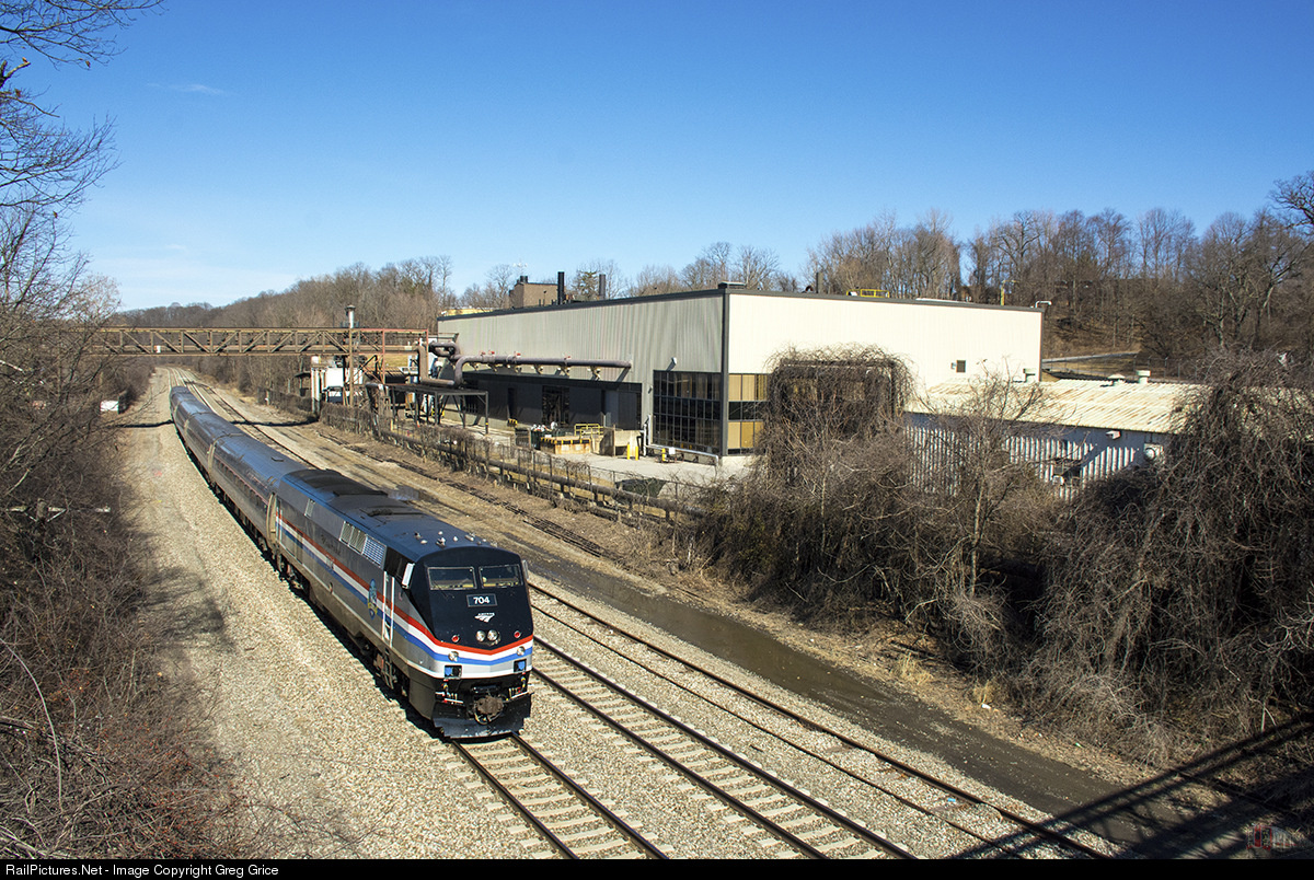 | "Phase III P32 at the Cool Abandoned Factory Thing" Amtrak 238 with P32AC-DM #704 flies south down the Hudson Line past the Cool Abandoned Factory Thing. The Cool Abandoned Factory Thing is in fact the name of the building in the background and is located behind IBM in Poughkeepsie, NY (This location can even be found on Google & Google Maps).