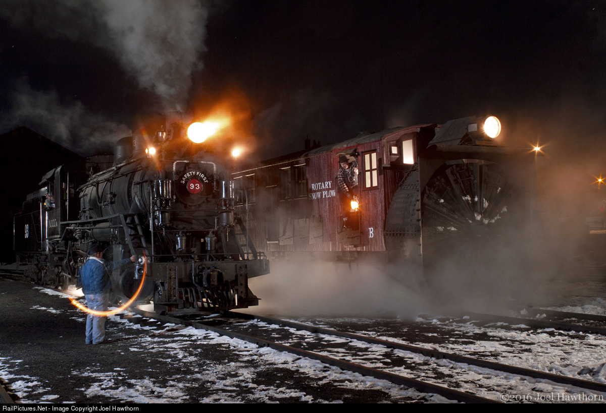 On Friday night our group of photographers were treated to a stationary display of the #93 and snowplow staged side by side near the engine house while Mr. Steve Crise supplied an array of his strategically placed flash and strobe devices. All of us then took extended exposures while a few of the railroaders posed very still, well except for the fellow swinging his signal lantern. (Winter Steam Spectacular 2016)
