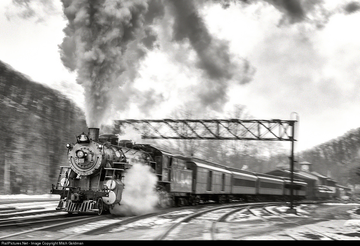 I remember the day well. It was a dark and dreary February morning in Port Clinton, PA. I set up for the shot, along with a bunch of friends, but didn't have to wait long. Within minutes, ol' #425 came barreling through, ducking the signal bridge, on the main passing the offices of the Reading & Northern. This is when and where I captured not just my first pan, but the first zoom pan - of the day! Captured at 1/20th,