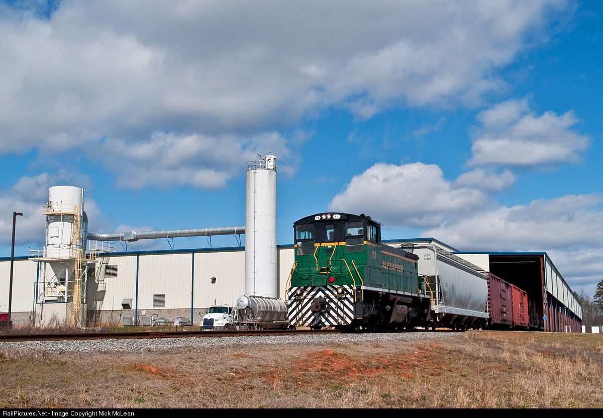 | Doing what they do best, the Alexander switches one of their numerous customers, shoving a few boxcars back to a loadout. |