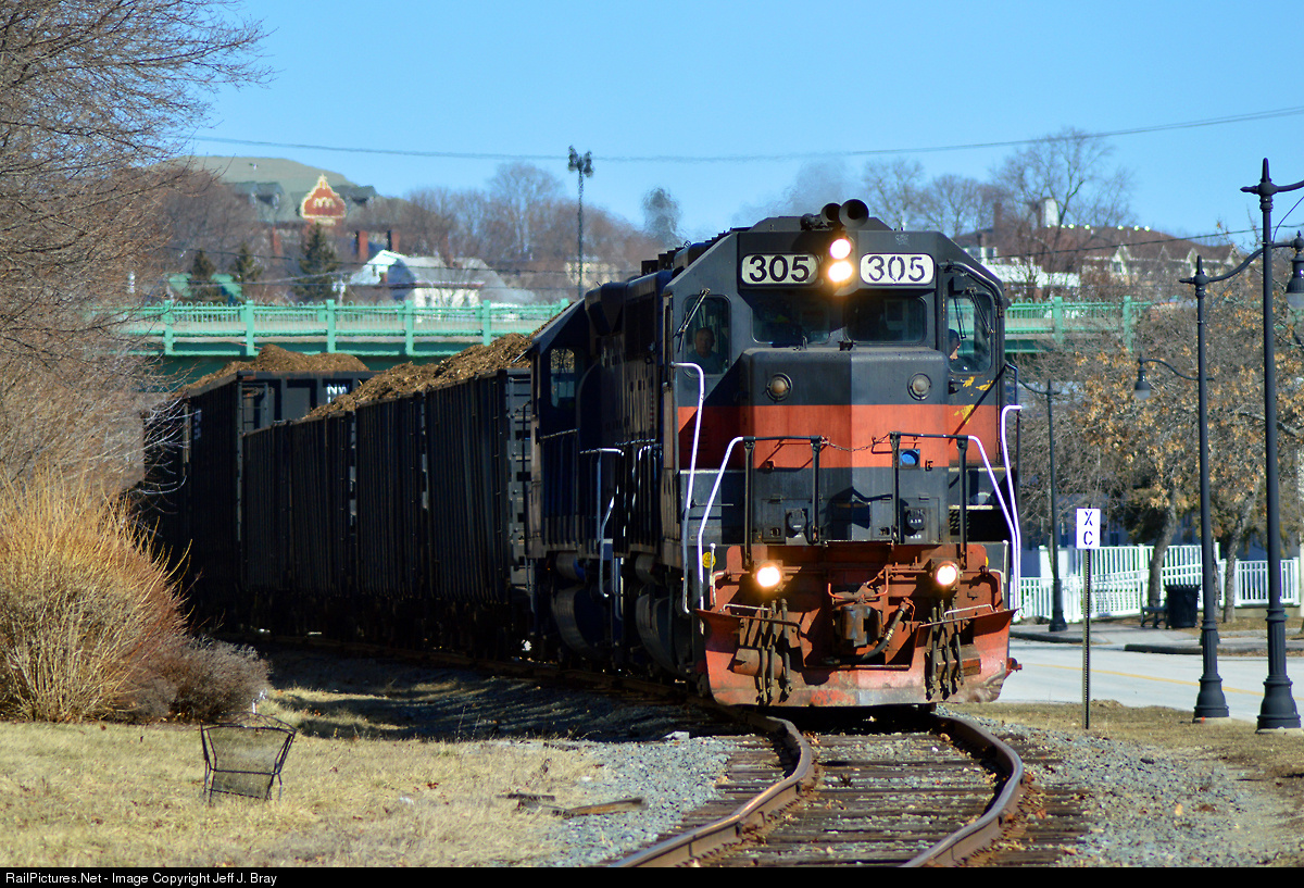 With Railroad Street in its sight, 305 and 3005 led a healthy string of Mattawamkeag cars toward Northern Maine Junction. With both the nearby Old Town and Bucksport mill closed down, these moves to and from the tie chipper operation in 'Keag are pretty much all that visit the one time Maine Central mainline east of Calais Junction and MP 60.