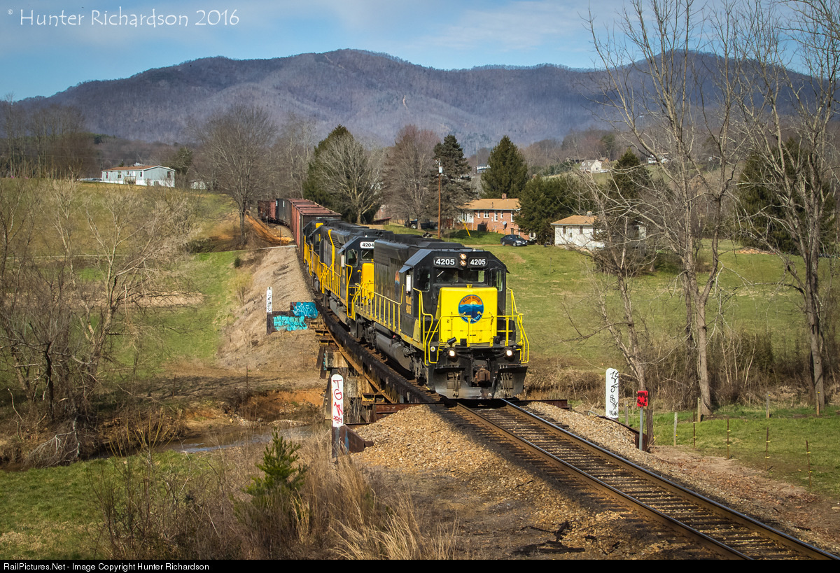 Weaving through the gorgeous North Carolina countryside, former UP, WAMX 4205 leads Blue Ridge Southern T31 eastbound through Candler, North Carolina bound for Asheville with Engineer Cain behind the throttle and Conductor Roberts riding shotgun.