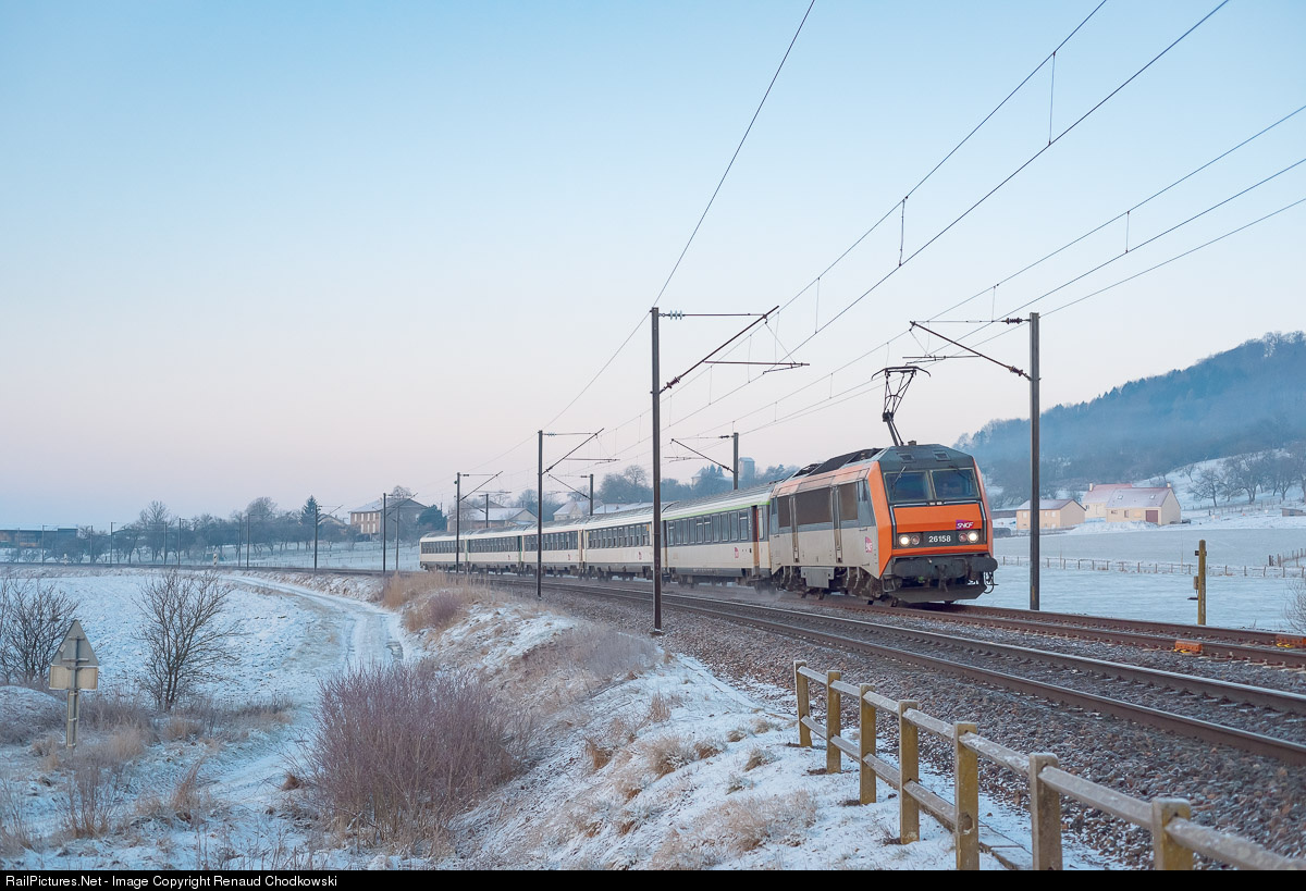 | A thin layer of snow is moved by the BB26158 pulling a night passenger train (Nice to Luxembourg). These very last French night trains are going to be canceled in a close future (July 2016). Sony A900. |