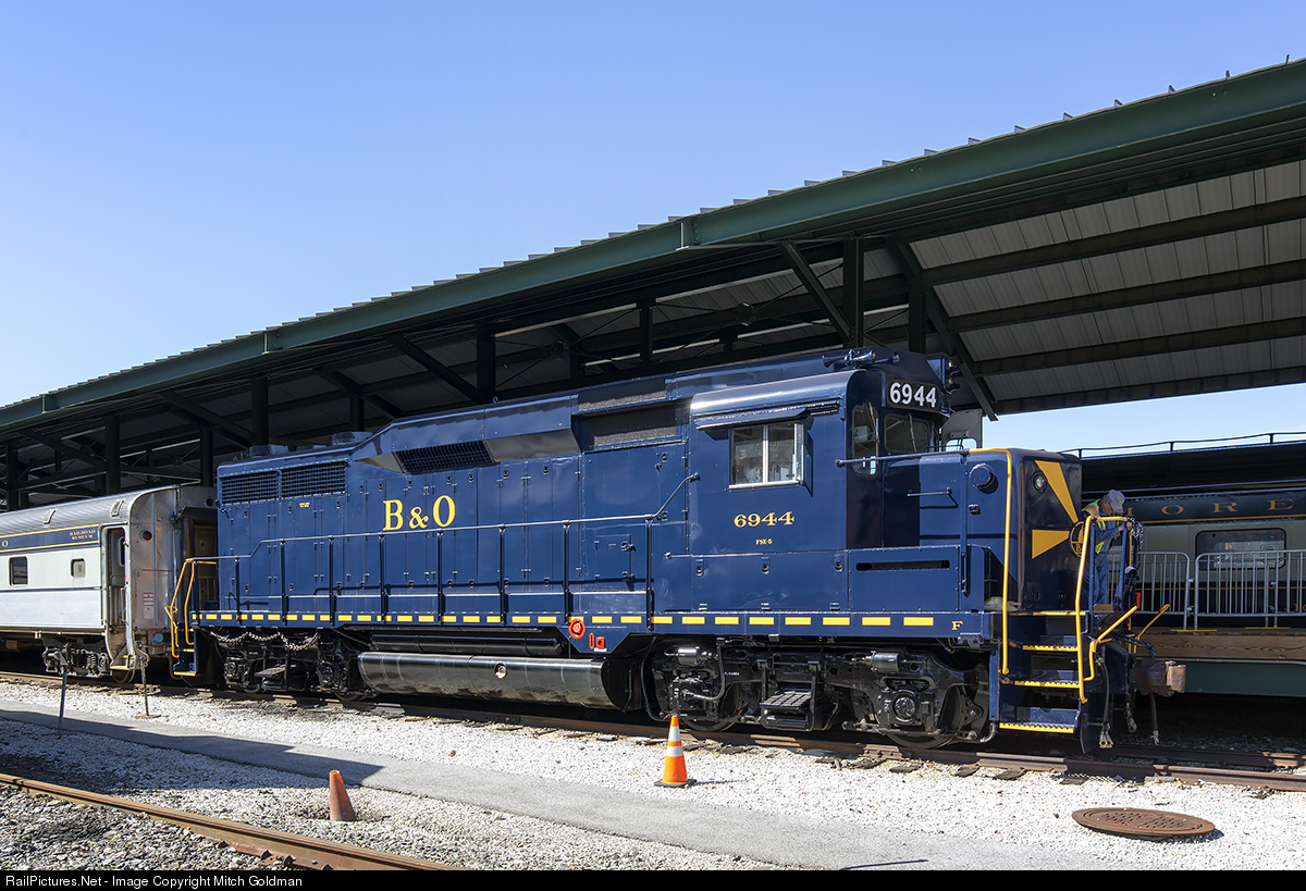 The GM-EMD GP-30 No. 6944 was originally built for the B&O Railroad in 1962. Its builder number was No. 27661 and its EMD order number was No. 7631. The locomotives in this class were the only class of locomotives delivered in the sunburst paint scheme. In July of 1982, the No. 6944 was rebuilt into a GP-30m by the Cumberland, MD locomotive shops. It was later renumbered as CSXT No. 4253. On January, 22, 1996 the No. 6944 retired and was donated to the B&O Railroad Museum. It was delivered to the Museum on February 13, 1996. The original number and paint scheme was reapplied in June 1996. - from the B&O RR Museum's web site.