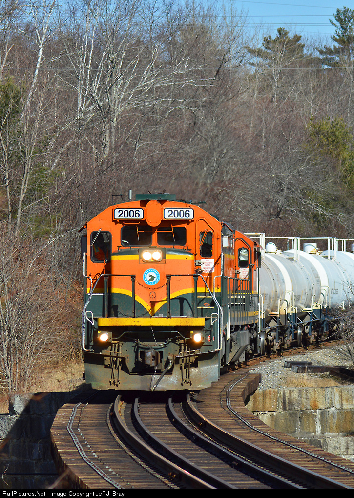 With its tail still rolling over West Hill Road during the late morning of March 12, 2016, Central Maine & Quebec's southbound #211 was making it's way onto the curved trestle over Loggin Road in Frankfort, Maine. Matching B23-7s 2006 and 2003 had Old Stage Road and MP 16 of the Searsport Branch in their sights. The crew would spend time along the Maine coast until mid-afternoon before returning home near Bangor later in the day.