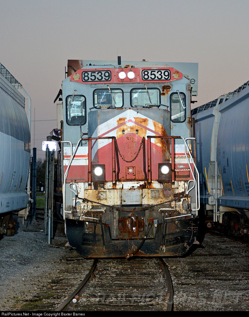 | On March 14, 2016, the Huntsville and Madison County Railroad took delivery of 2 B39-8s, one from MMA and one from SLRG. Here's 8539 resting between two cuts of cars at the north of the yard as the sun sets over Huntsville.