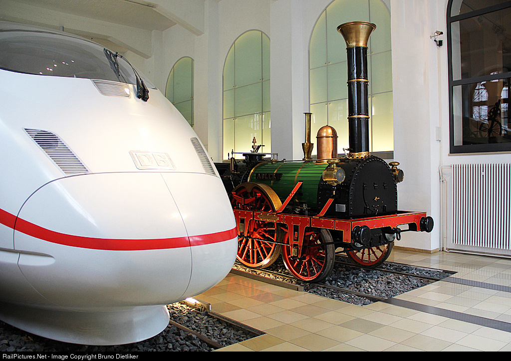 | 164 years difference between these two 'replicas': left ICE 3 (InterCityExpress) built 1999, right the first steam loc of Germany 'Adler', built 1835 |