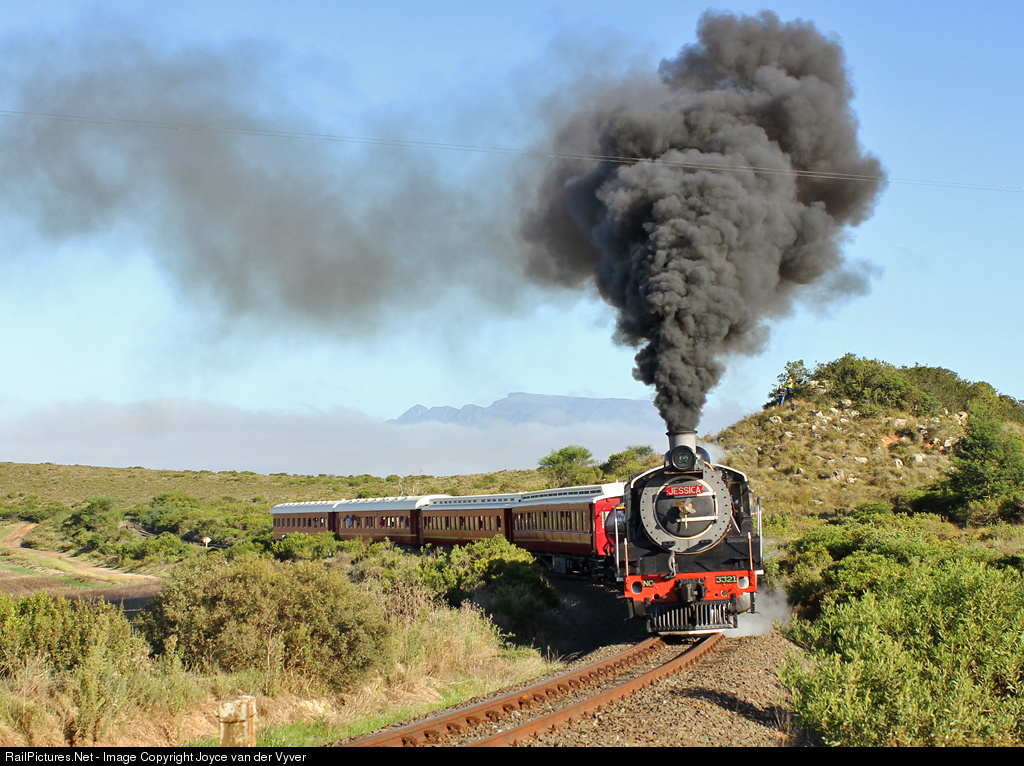 Jessica leading her train up the grade into Niekerskhek as the sun is burning off the morning clouds. The aim of the Ceres Rail Company trip from Ceres to Mossel Bay was for Class 19D No. 3321 to bring the newly restored Class 19B No. 1412 back to Ceres.
