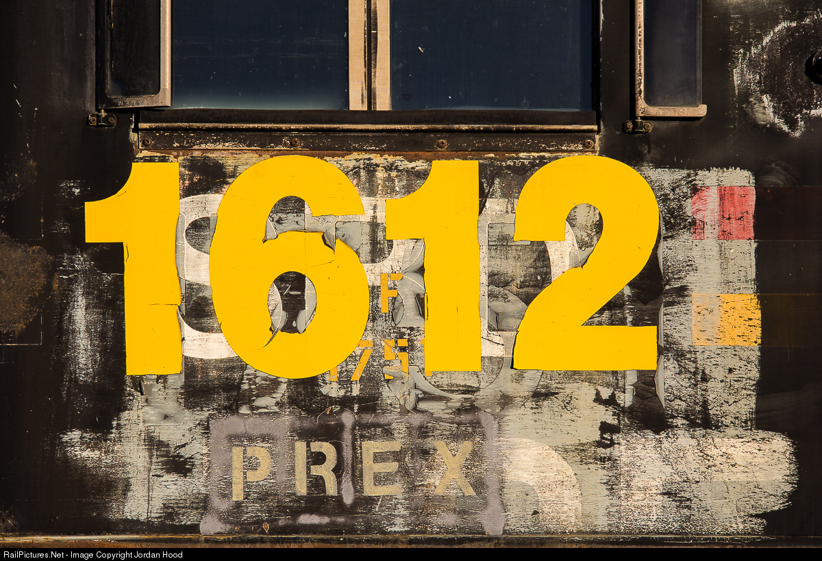 | Cab detail of Alabama and Florida GP16 No. 1612 highlighting the Seaboard lettering and Family Lines striping. The former ACL GP7 was rebuilt at the Uceta Shops in Tampa, Florida in the early 1980s as part of the 161 unit GP16 rebuild program. |