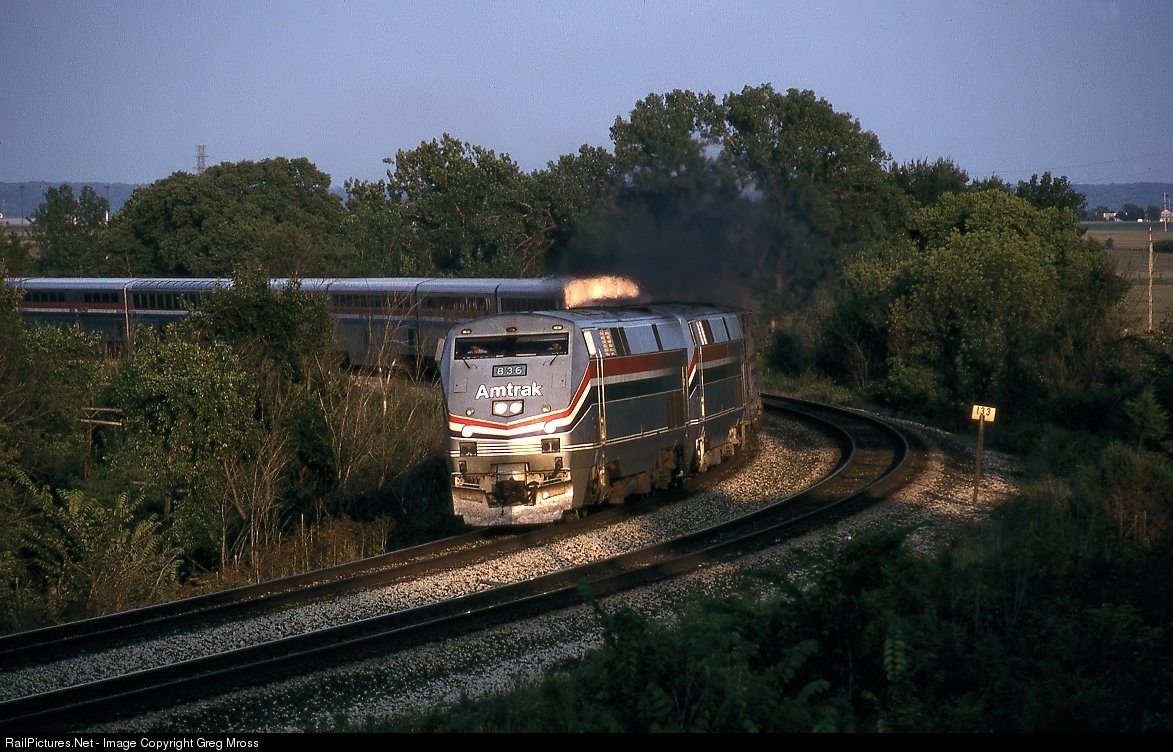 Amtrak #836 leads the Southwest Chief thru Houlihan's Curve in the fading light of a beautiful Summer's day. Amtrak no longer uses this line except for the occasional detour.