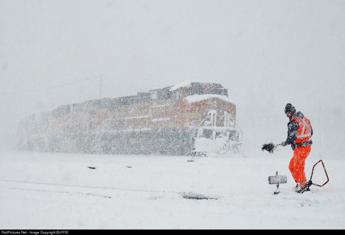 Spring storm Selene brought nearly two feet of snow to the Denver and Front Range. That means crews bringing freights into the Denver yard needed to be diligent about cleaning switches – a difficult task given the blowing snow and freezing temperatures.