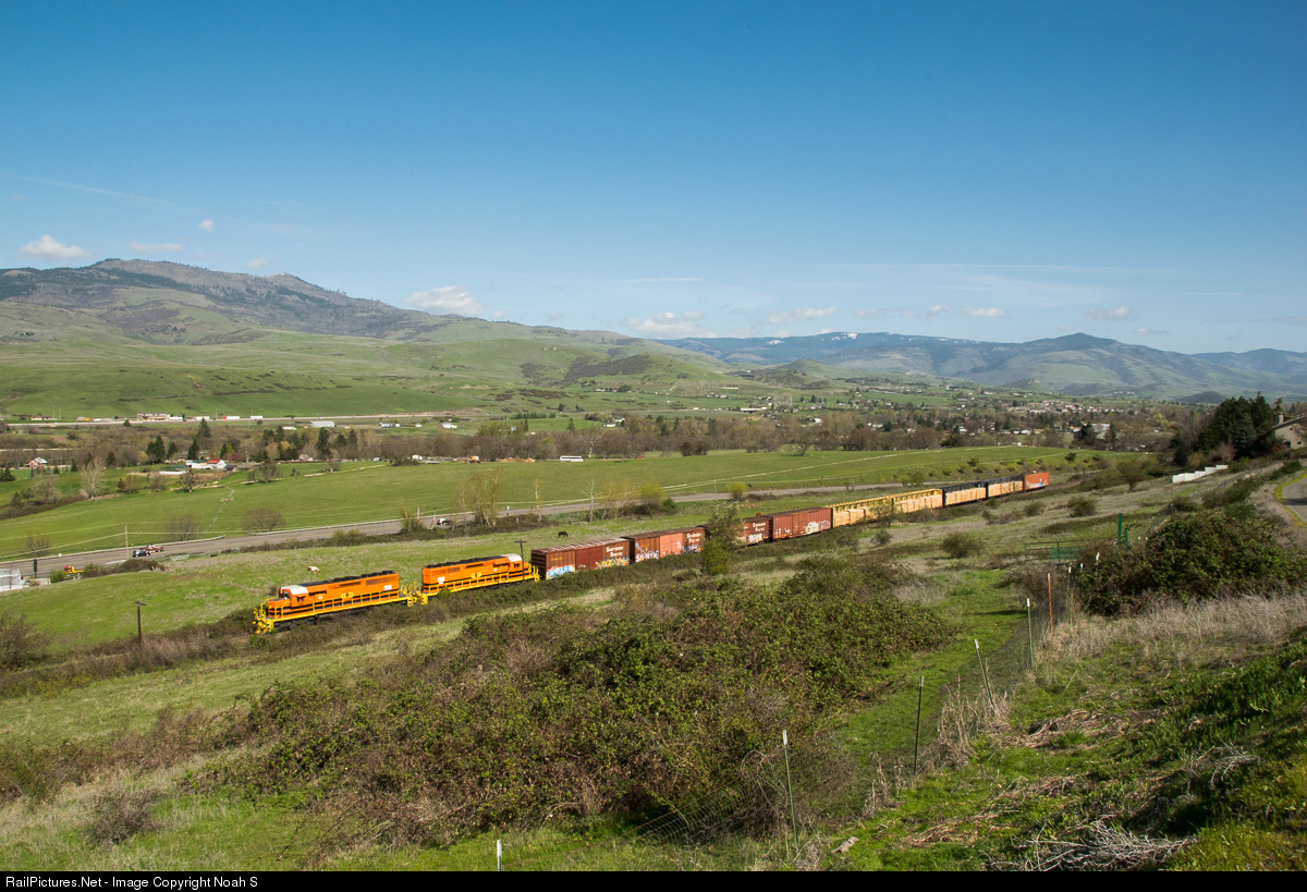 The Central Oregon and Pacific railroad recently reopened their Siskiyou Branch over the steep grades of the Siskiyou Mountains in southern Oregon and northern California after many years of no service. As evidenced by the length of this northbound train, however, demand on this part of the line isn't quite what it used to be. Before, a normal lashup included around 6 EMDs and somewhere in the neighborhood of 100 cars over the pass in both directions each day. Now, even 20 cars per train is unusually high. Perhaps they will see more success as time goes on.
