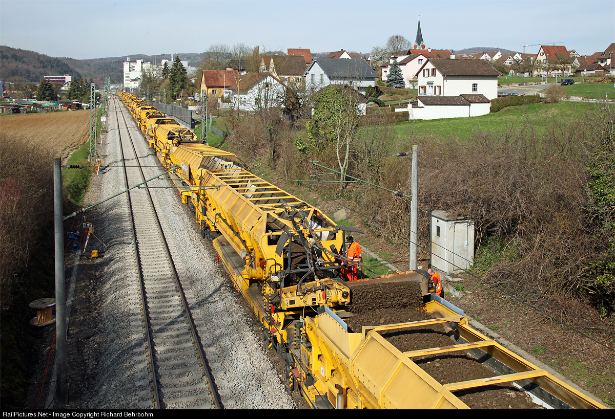 A long train for maintenance of tracks between Thayngen and Bietingen.