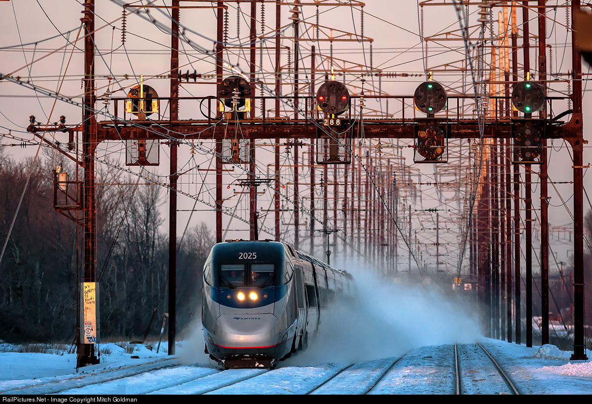 RailPictures.Net Photo: AMTK 2025 Amtrak Bombardier/Alstom Acela Express Trainset at Edison, New Jersey by Mitch Goldman