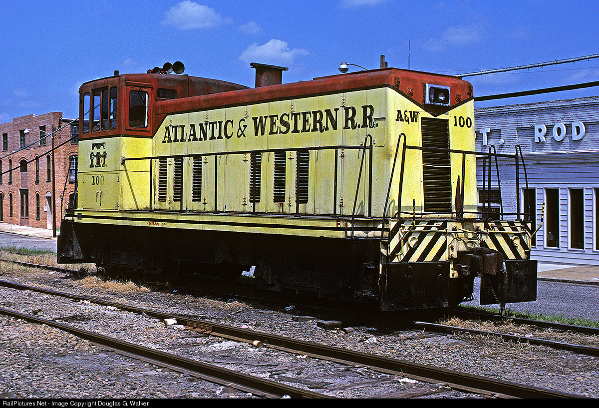Sanford, North Carolina, is home to the shortline Atlantic & Western. On September 20th, 1986, ATW 70-ton #100 was found idling in downtown Sanford. This little GE diesel, built for the ATW in September 1950, could use a new coat of paint.