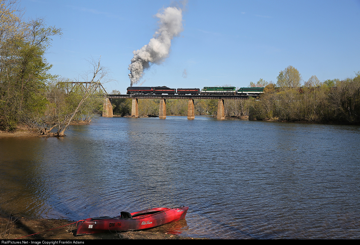 | N&W J class #611 slowly crosses the Catawba River in Catawba, NC on its way to Asheville, NC. |