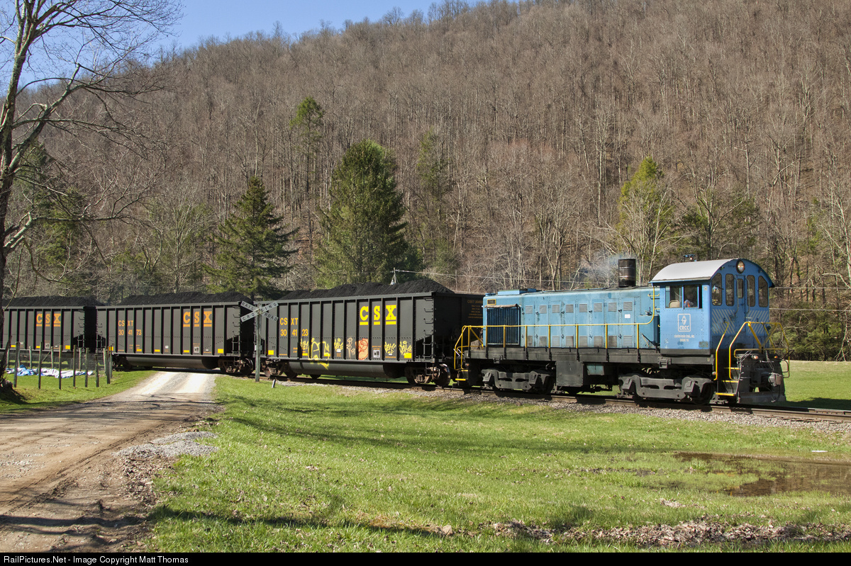 Beech Mountain Alco S4 #115 leads a string of CSX loaded hoppers across Palace Valley Road from the Carter-Roag Mine at Star Bridge to Alexander. From Alexander they will be picked up by the A&O and eventually CSX on their way to Baltimore and export to parts unknown. Another valuable load of Upshur County WV coal helps feed a worldwide economy.