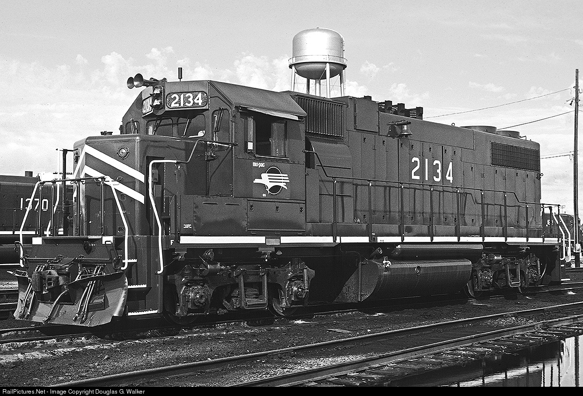 Missouri Pacific owned over 300 SD40-2s, but the locomotive that really defined the MP in the 1970s and beyond was the EMD GP38-2 - The MoPac owned 264 GP38-2s (along with 6 GP38s). Built in August 1976, MP 2134 is from the railroad's smallest order for these engines - Order 766004 was for just five engines, MP 2133-2137. While pretty basic, these units did come equipped with a snowplow and a four-stack exhaust.