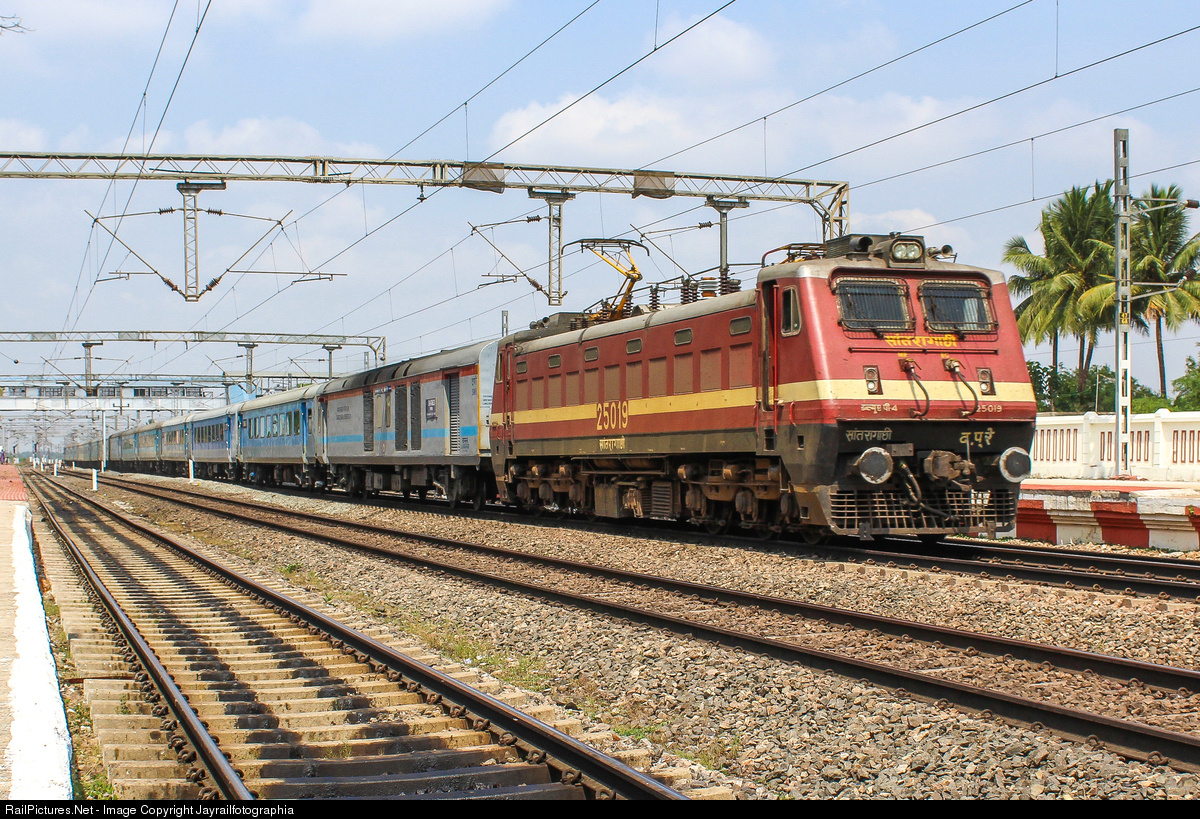 WAP-4 of SANTRAGACHI shed far away from its home shed in Eastern India powering Shatabdi Express down South