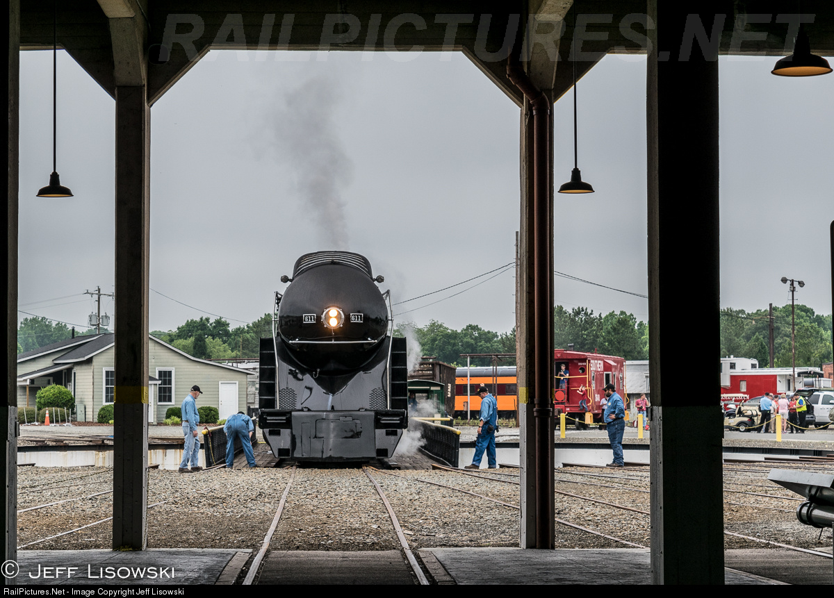 I had flown a red eye flight out of San Diego at 7:20 PM the night before with a connection in Phoenix. I landed in Charlotte at roughly 6:04 AM, got my rental car and proceeded about as fast as I could go up I-85 in morning rush hour. I pulled into Spencer, grabbed my camera gear and bee-lined it for the group huddled around Jim Wrinn giving his safety briefing on the platform of a Southern caboose seen in the background of this image. I heard every word Jim said- at least I think- but I had a hard time taking my eyes off of 611.