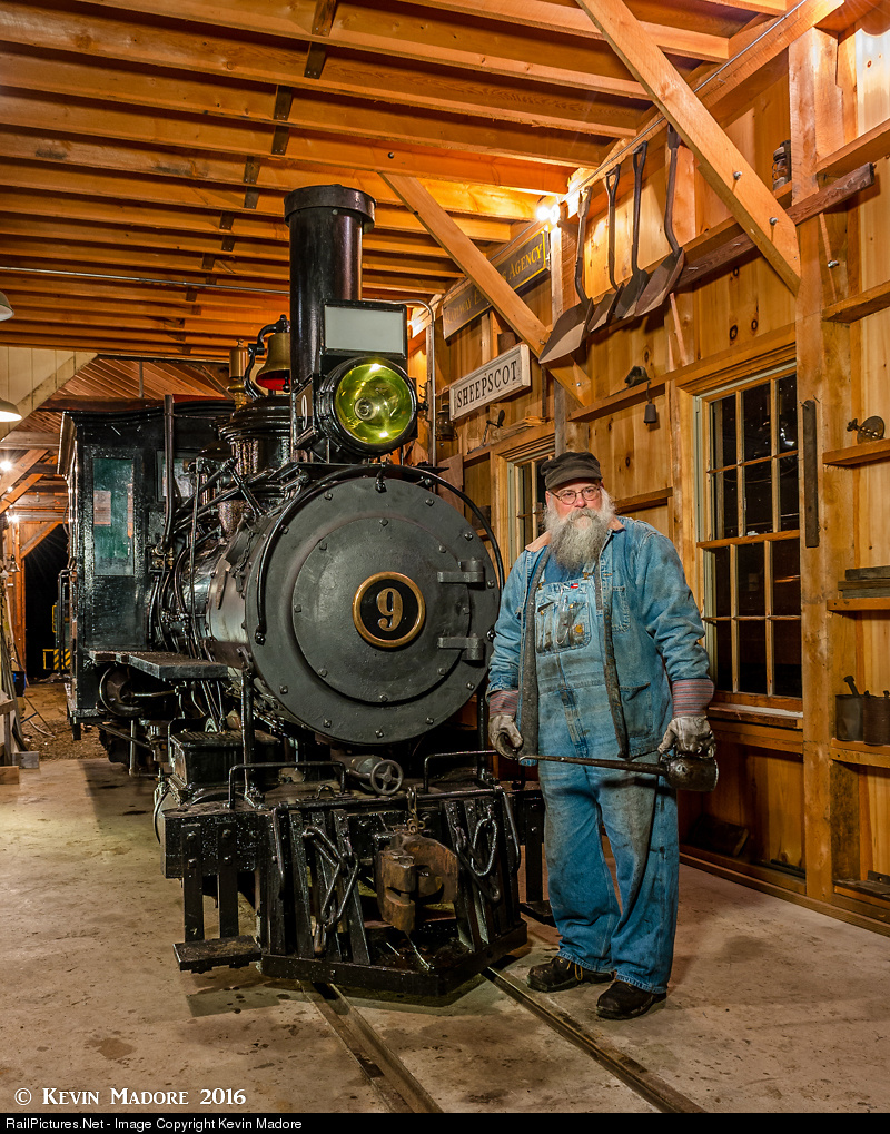 Living history. WW&F Engineer Robert "Bullet Bob" Longo poses with Engine #9 at the conclusion of the museum's March, 2016 photo excursion. The folks at the WW&F Museum take great pride in the authenticity of their operation, from the faithfulness of the equipment and infrastructure restorations to the historically correct operational procedures, right down to the look of the crewmembers.