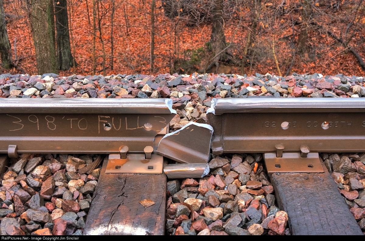 On my way to work on November 18, 2009, the dispatcher calls to inform me I72 left a track indication between Attica and Marshfield. After obtaining Track Authority, I put my hyrail truck on the rail and found my first broken rail this autumn. This is not a typical broken rail; most are simple vertical breaks and once temporary bars are installed, trains are generally allowed to run over the break at 10 MPH until the rail is replaced. In this case, however, the seven inch gap was deemed to be too great and the rail had to be replaced before train movements could resume. I want to make it clear that broken rails occur on a daily basis and this does NOT reflect poor or substandard maintenance practices on Norfolk Southern.