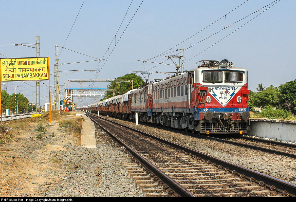Fresh from overhauling ,"Barbie" liveried WAG-5HA of VALSAD shed powering loaded BOXN consist towards Arakkonam