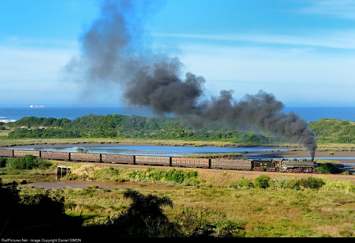 | An empty coal train has left the Imbituba port a few minutes ago and is now running along the shores of the Atlantic Sea in direction Tubarao. This used to be the classical shot near Imbituba during the steam days. |