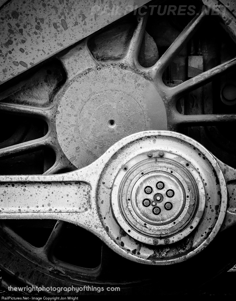 A close up view of the Fireman's side No. 3 crank pin roller bearing on N&W J Class locomotive 611.