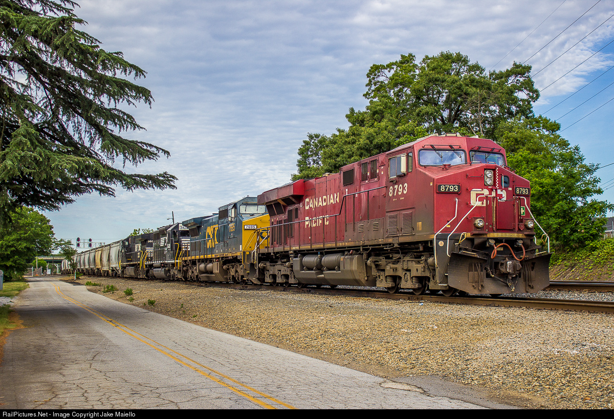 | Far away from home, a Canadian Pacific ES44AC takes in the Georgia sun on a warm spring day, much unlike the current conditions in its home country. The locomotive and company are sitting on the Gainesville Midland lead after being used as power for P91 the previous day. |