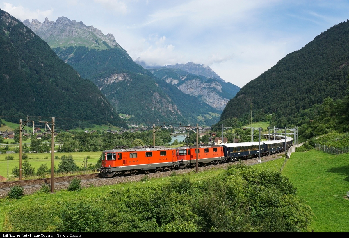 Re 4/4 II # 11132 and # 11140 with the Venice Simplon-Orient-Express (VSOE) near Erstfeld.