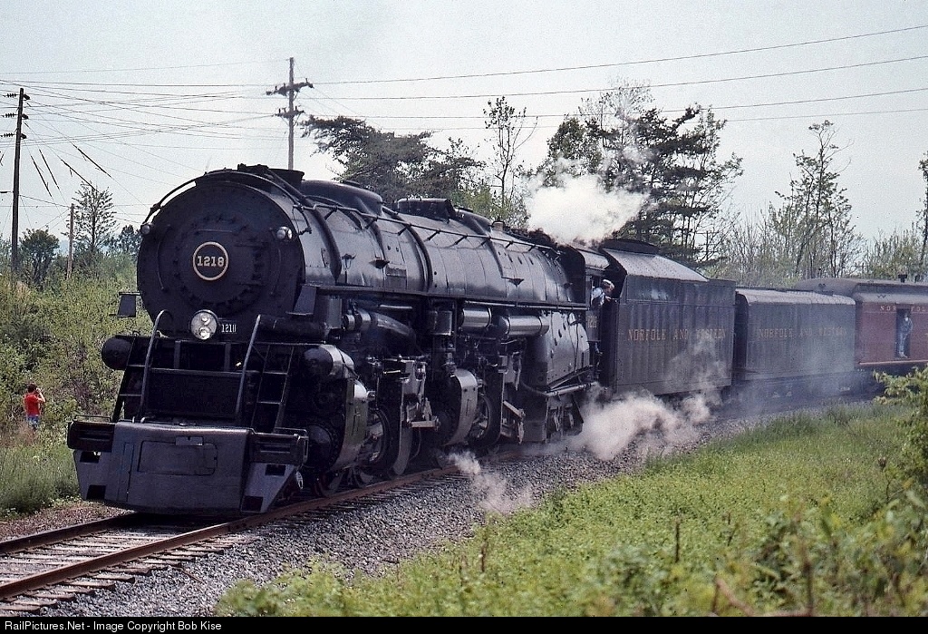 The 1218 is struggling mightily to back her train around the Front Royal wye for the layover after a trip through Manassas Gap. Although limited cutoff kept the Class A factor of adhesion at a tolerable level for most tasks, the grade, curve, and heavy train required the 1218 in this instance to pull forward while laying sand to be able to gain enough momentum to back completely through the wye.