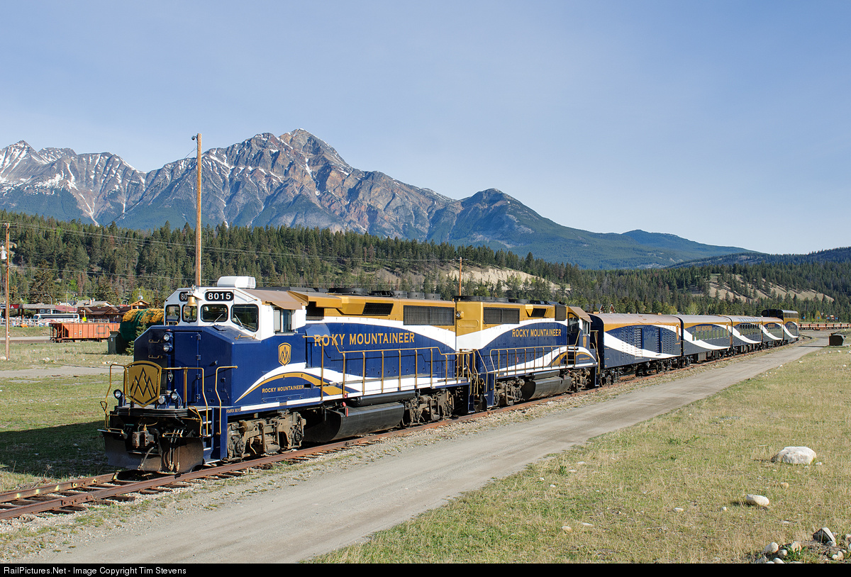 RailPictures.Net Photo: RMRX 8015 Rocky Mountaineer Railtours EMD GP40-2W at Jasper, Alberta, Canada by Tim Stevens