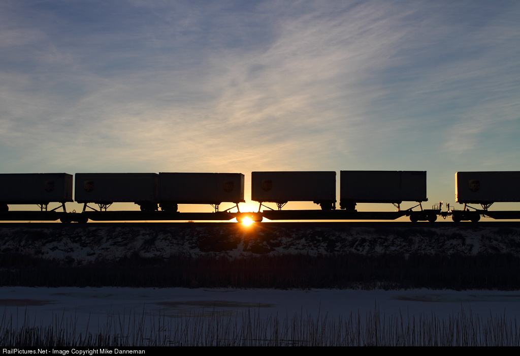 At sunrise on January 6, 2011, BNSF's Denver to Chicago Z-train flies eastbound at Barr, Colorado, with the morning sun silhouetting UPS “pup” trailers headed for the Windy City.