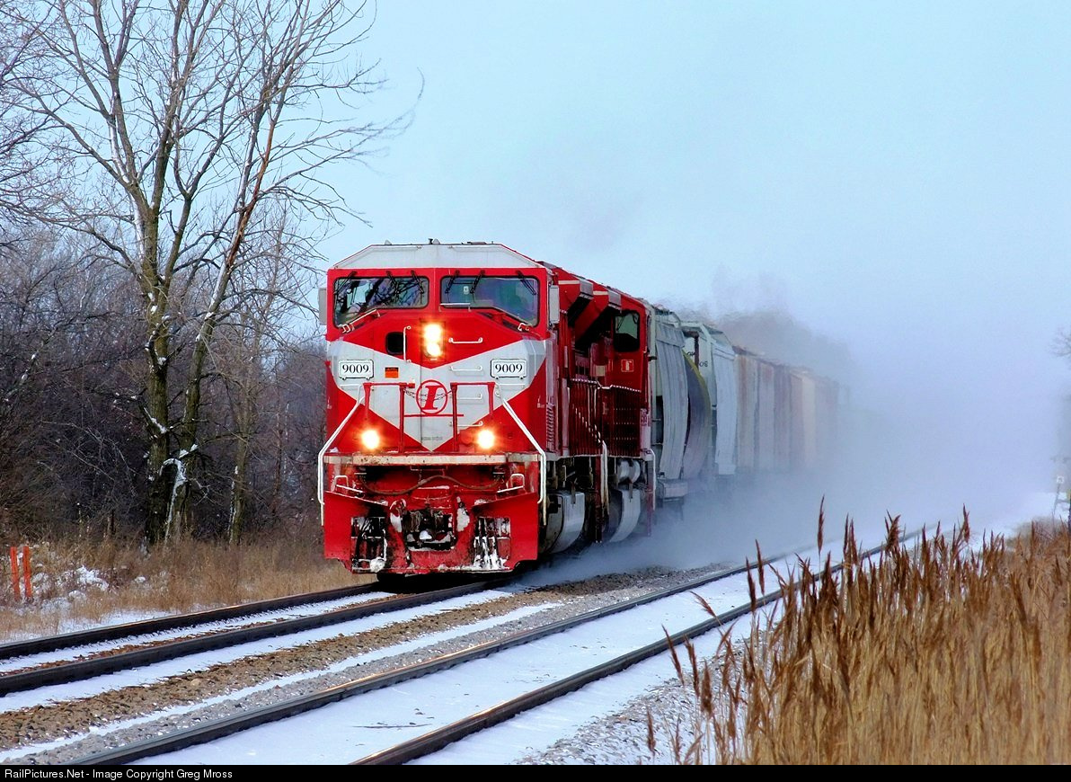 INRD 9009 leads a train on CP tracks in Caledonia on a brisk day in February of 2013.
