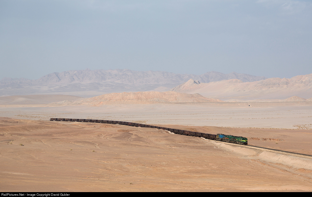 Three EMD GT26CW-2 (with 60-819 leading) haul an ore train from Bafq towards Yazd, Iran. The line goes around what appears to be a dry lake bed, as you can see in the background. This is where things took a turn for the worse earlier that day: We got our Dacia Logan stuck in the sand (not me driving, even though I'm usually the expert in getting cars stuck...). It took an hour of digging with our bare hands (I mean, why would you take a shovel on a trip to the desert) and working with stones and the car jack to get it back out. But shhh, don't tell our rental agency! And all that despite that the lady at the rental agency told us "You will not have problem!" when I pointed out the flat spare wheel (which we got fixed, but didn't need).