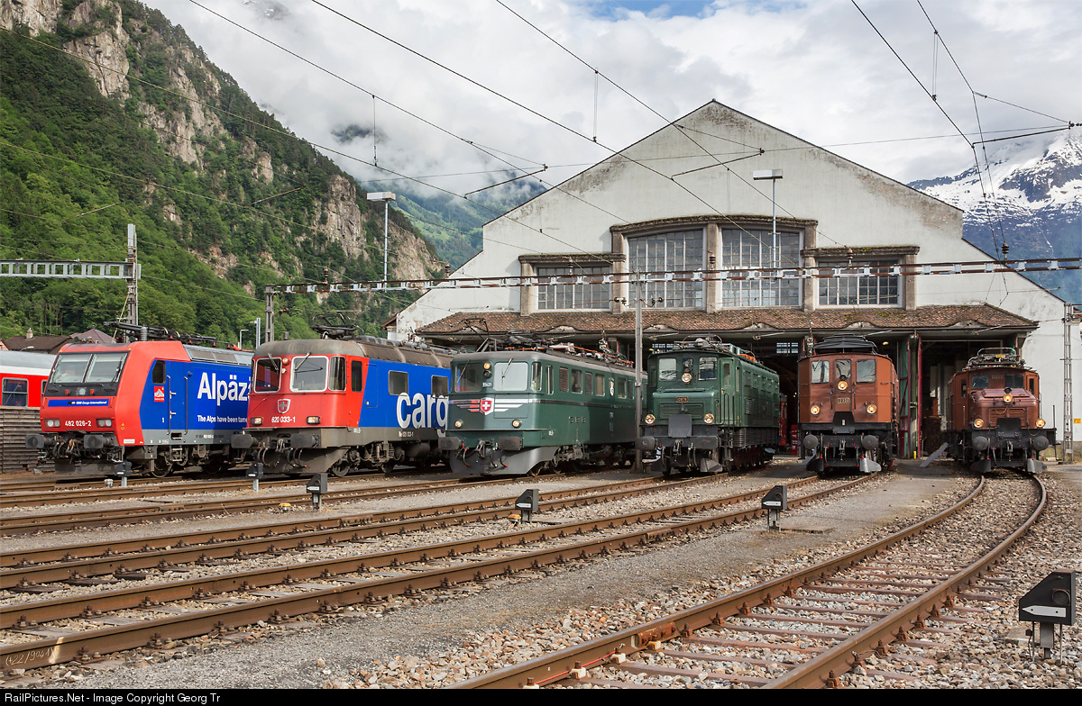 RailPictures.Net Photo: 482 026, 620 033, 11421, 10976, 12320, 14253 SBB Historic Re 482, Re 620, Ae 6/6, Ae 4/7, Be 4/6, Ce 6/8 II at Erstfeld, Switzerland by Georg Trüb