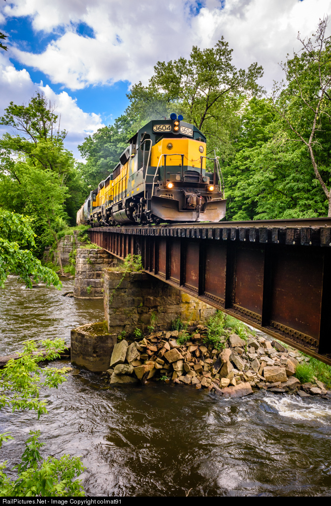 A pair of Housatonic GP35's are seen crossing there namesake river in there namesake town. The train is returning to Canaan after interchanging with CSX.