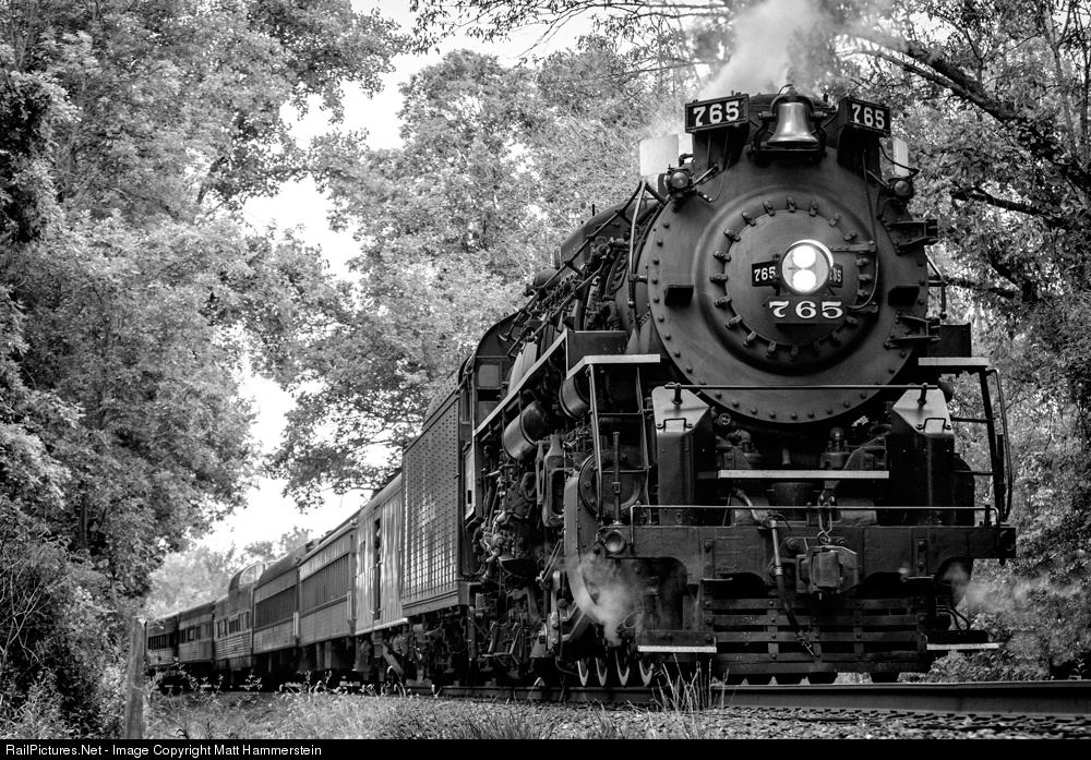 | Nickel Plate Road Berkshire 765, owned and operated by the Fort Wayne Railroad Historical Society, leads an excursion train during the annual "Steam in the Valley" event. |