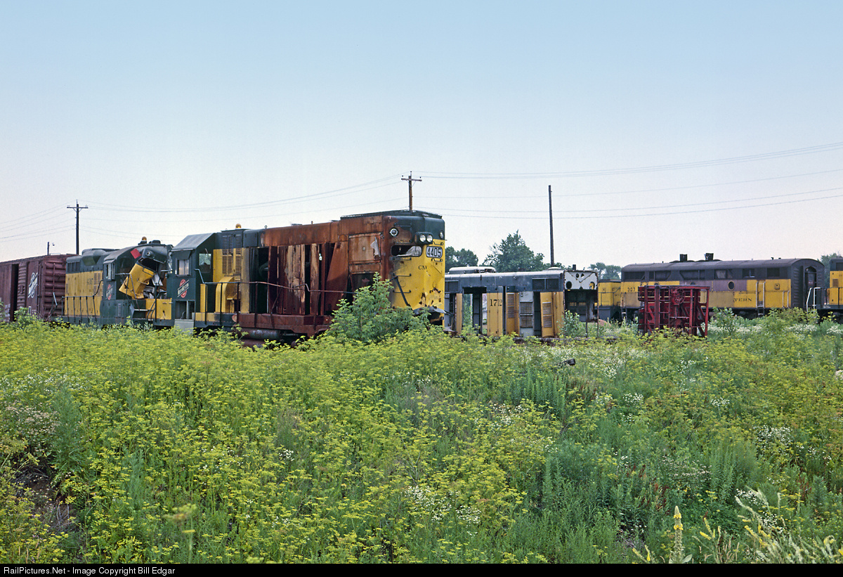 Oelwein was a major locomotive over hall and rebuild center for CNW after the 1968 merger with Chicago Great Western. It was also a place where locos would end their career. Fortunately for CNW 4405 a three year old GP15-1 at the time, its life was not over. It obviously suffered an engine room fire, but was rebuilt and continues service as Union Pacific UPY 550.