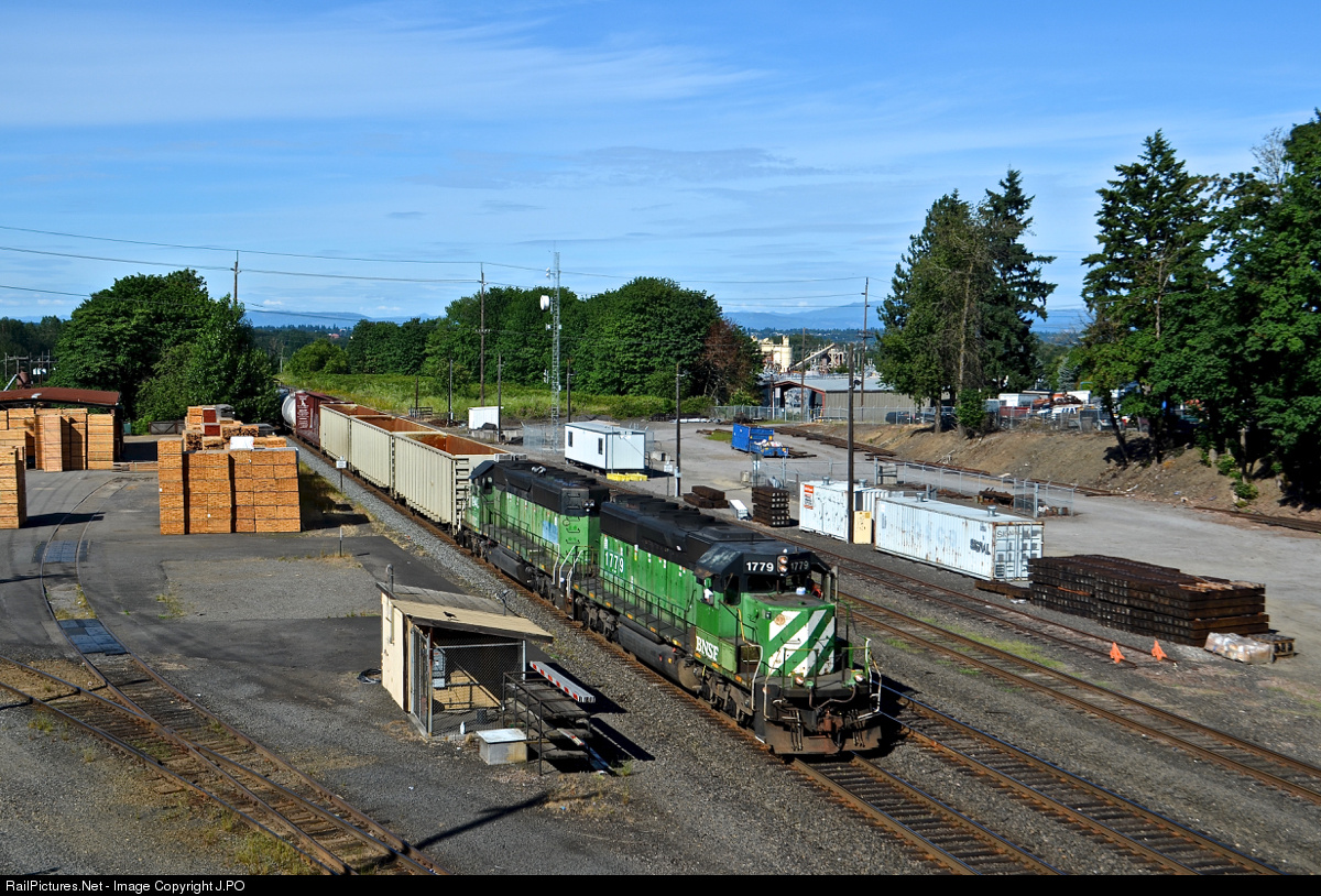 | The Green is good on this matched couple of Burlington Northern SD40-2s leading the daily Lake Yard Transfer. The train will switch a cut of cars out before proceeding over the Willamette to Willbridge. |