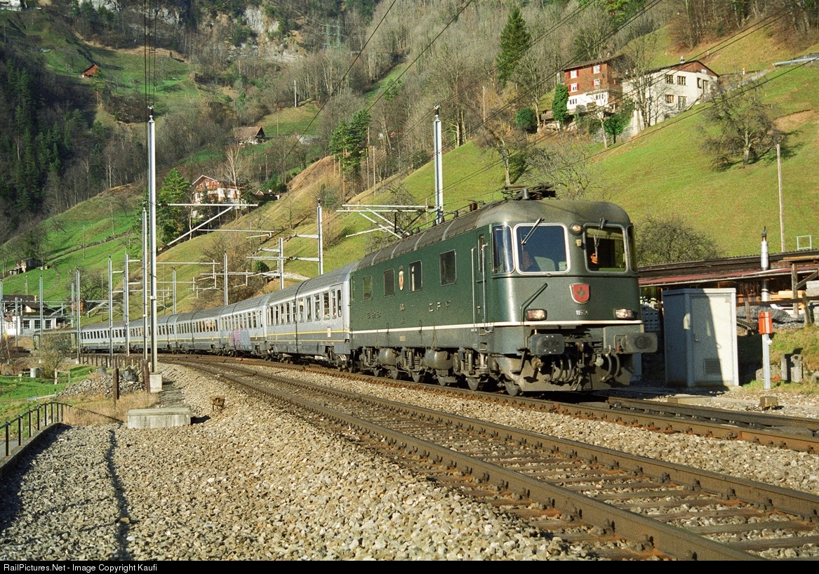 Back in the days.... In 1997, Sisikon at Lake Lucerne is still free of any noise protecting walls. In 1997, SBB is not spilt up between "Cargo" and "Personenverkehr". In 1997, locomotives can be seen in front of all kind of trains. In 1997, there were no italian built trains running over Gotthard route.