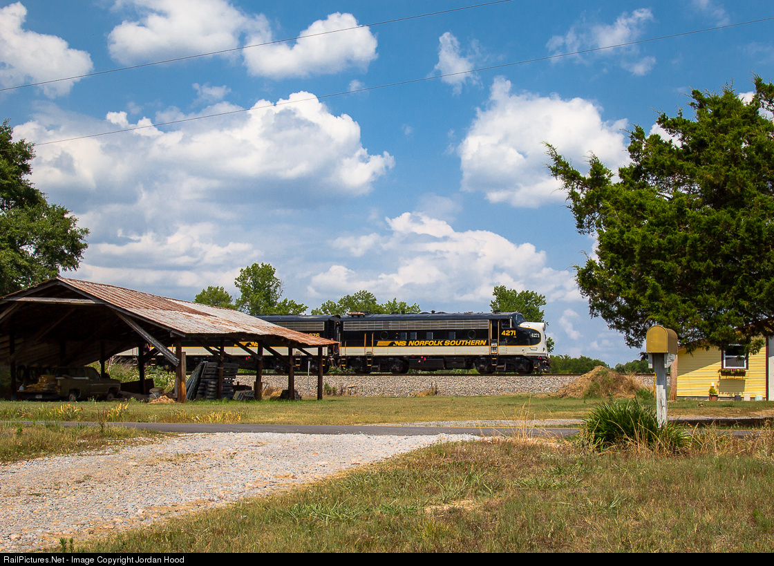 NS 951, a Chicago, IL to Jacksonville, FL office car special, races through the northwest Georgia countryside south of CP Hall. The train ran at an impressive pace, making the North End trip from Chattanooga to Atlanta in just over 3 hours.