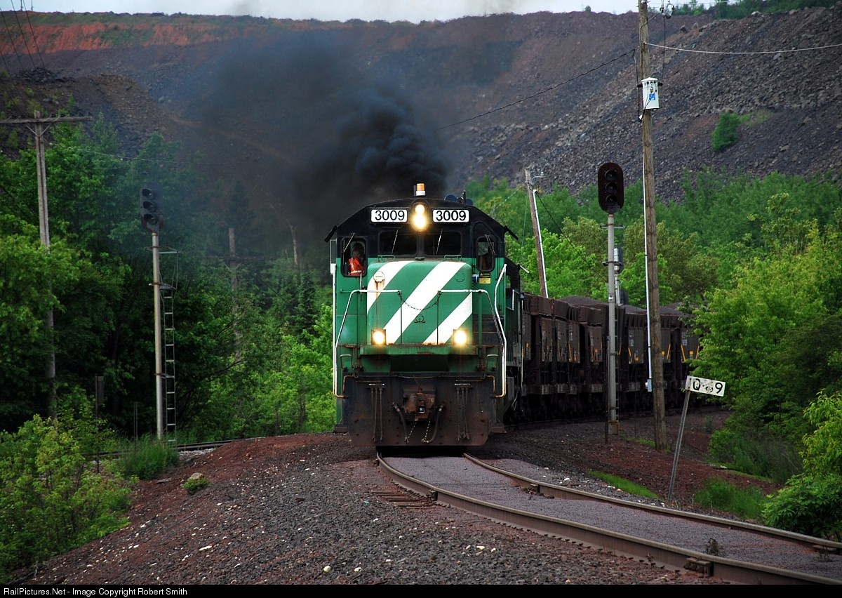 LSI U30C's 3009 & 3000 smoke it up through Empire Junction hauling ancient ore cars that were loaded at the Tilden Mine.